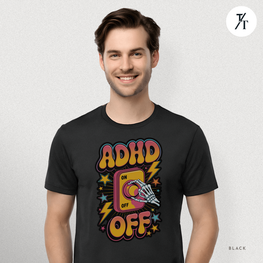 ADHD Off Shirt | Funny Skeleton Focus Switch Tee, Humorous Skeleton Art t-shirt