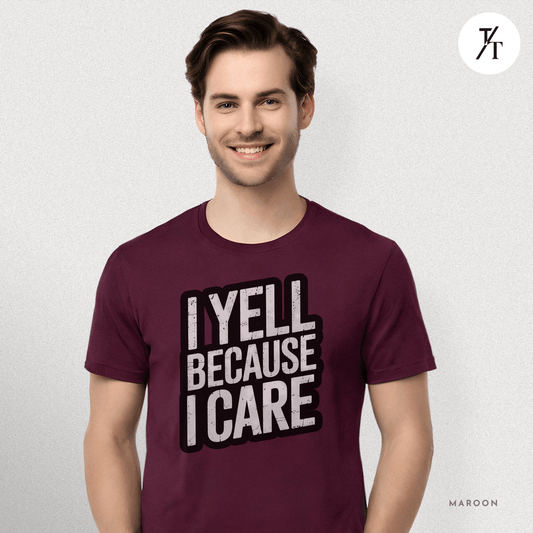 "I Yell Because I Care" 🗣️ Funny Bold Vintage-Style Graphic T-shirt