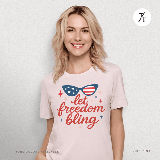 Let Freedom Bling – cute patriotic 4th of July sunglasses womens t-shirt