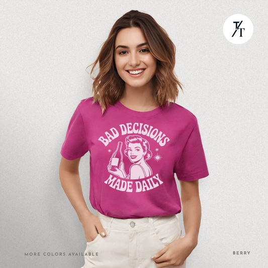 Bad Decisions Made Daily | Retro Humor Women's Drinking T-shirt