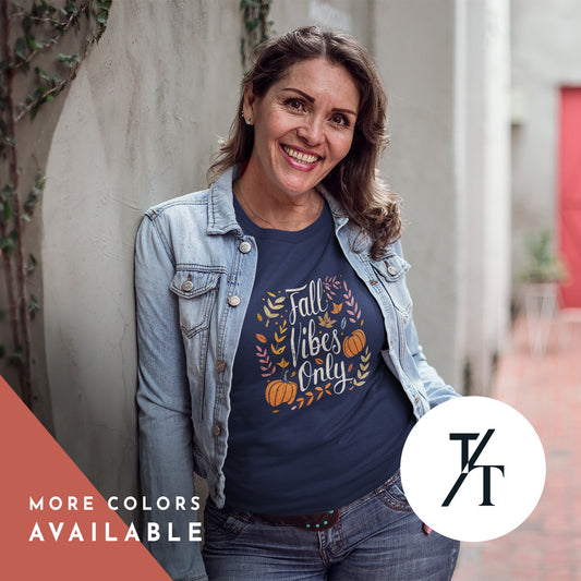 Cute Fall Graphic Tee for Women, Rustic Fall Vibes Only Design