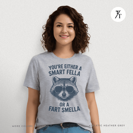 Funny Raccoon Smart Fella Or Fart Smella Graphic Tee