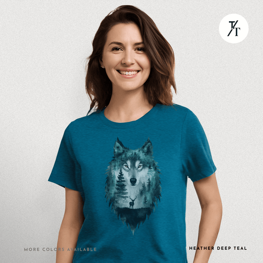Alpha Forest Wolf Tee – Wildlife Double Exposure Graphic Shirt