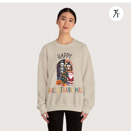 Festive Funny Happy Hallothanksmas Multi-Season Sweatshirt