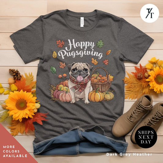 Pug Thanksgiving Shirt Gift For Her Dog Lover Tee