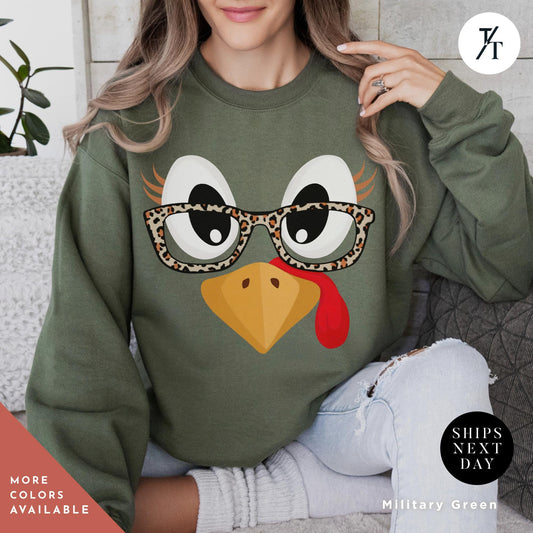 Cute Turkey Face Thanksgiving Sweatshirt Funny Turkey Sweater