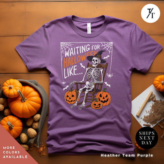 Waiting For Halloween Shirt Skeleton Adult Humor Tee