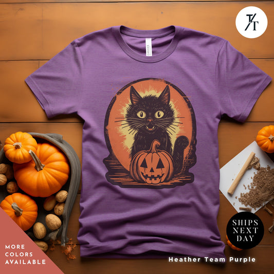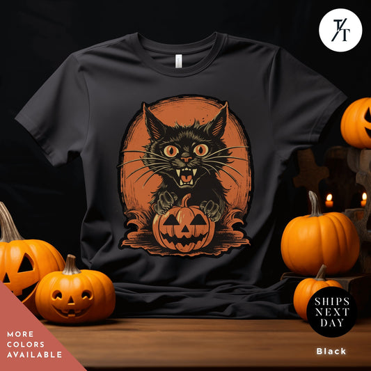 Long Live Halloween Vintage Scaredy Cat Black Cat Shirt