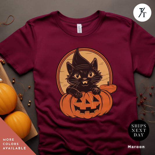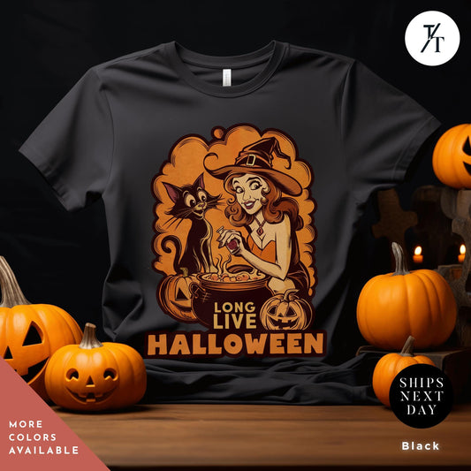 Long Live Halloween Witch Cat Shirt Vintage Black Cat Tee