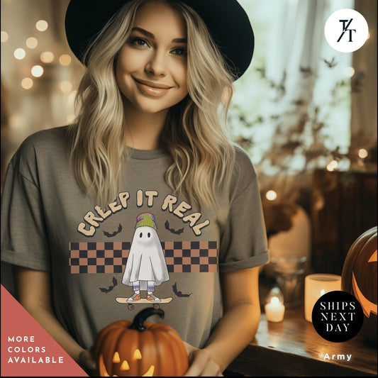 Creeping It Real Retro Halloween Cute Ghost Shirt Vintage Tee