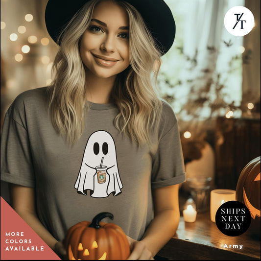 Coffee Ghost Shirt Cute Ghosts Embroidered Halloween Tee