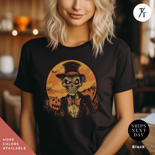 Retro Skeleton Halloween Shirt Vintage Tee Spooky Gift