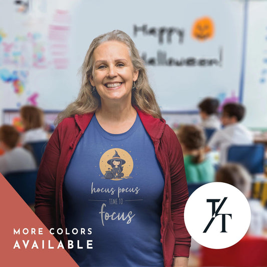 Hocus Pocus Time to Focus Teacher Halloween Retro T-Shirt