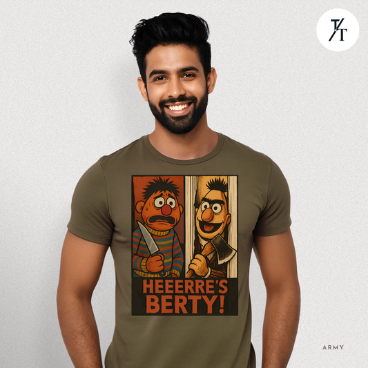 Heeere’s Berty! Tee – Horror Parody Sesame Mashup Shirt