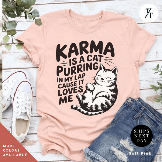 Karma Is A Cat Tee Funny Karma Vibes T-Shirt For Cat Lovers