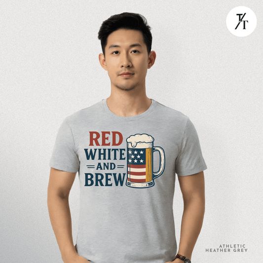 Red White and Brew funny retro patriotic 4th of July beer t-shirt