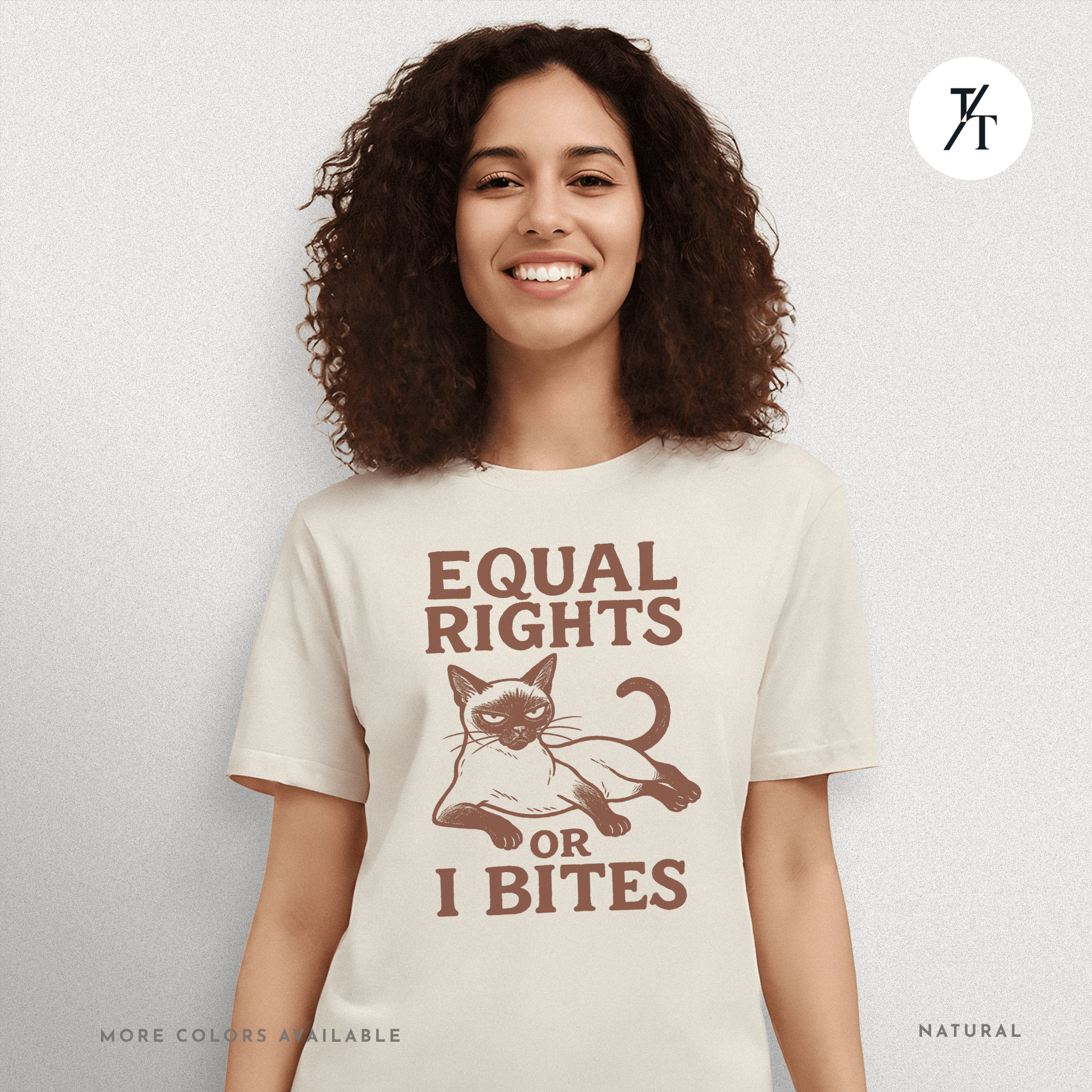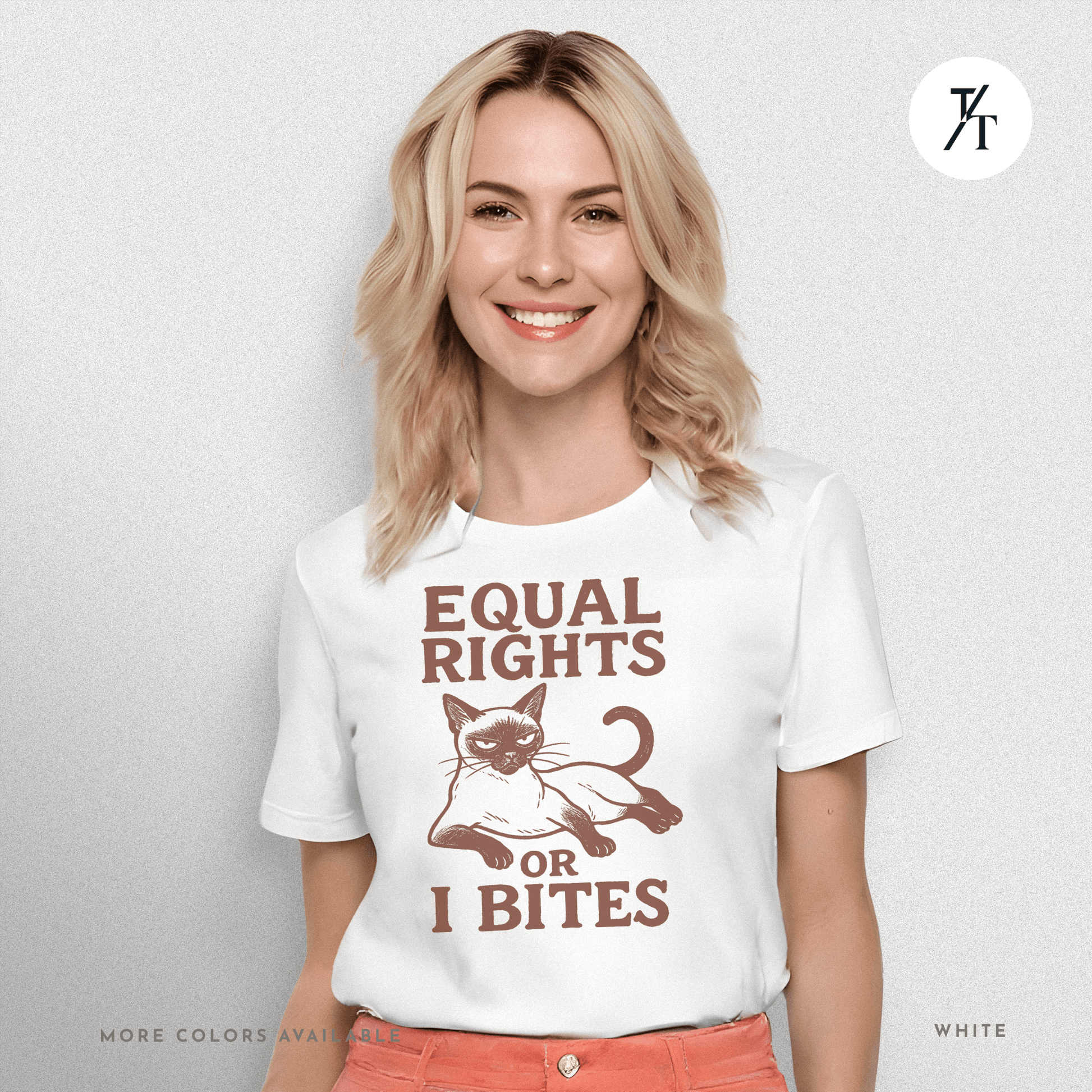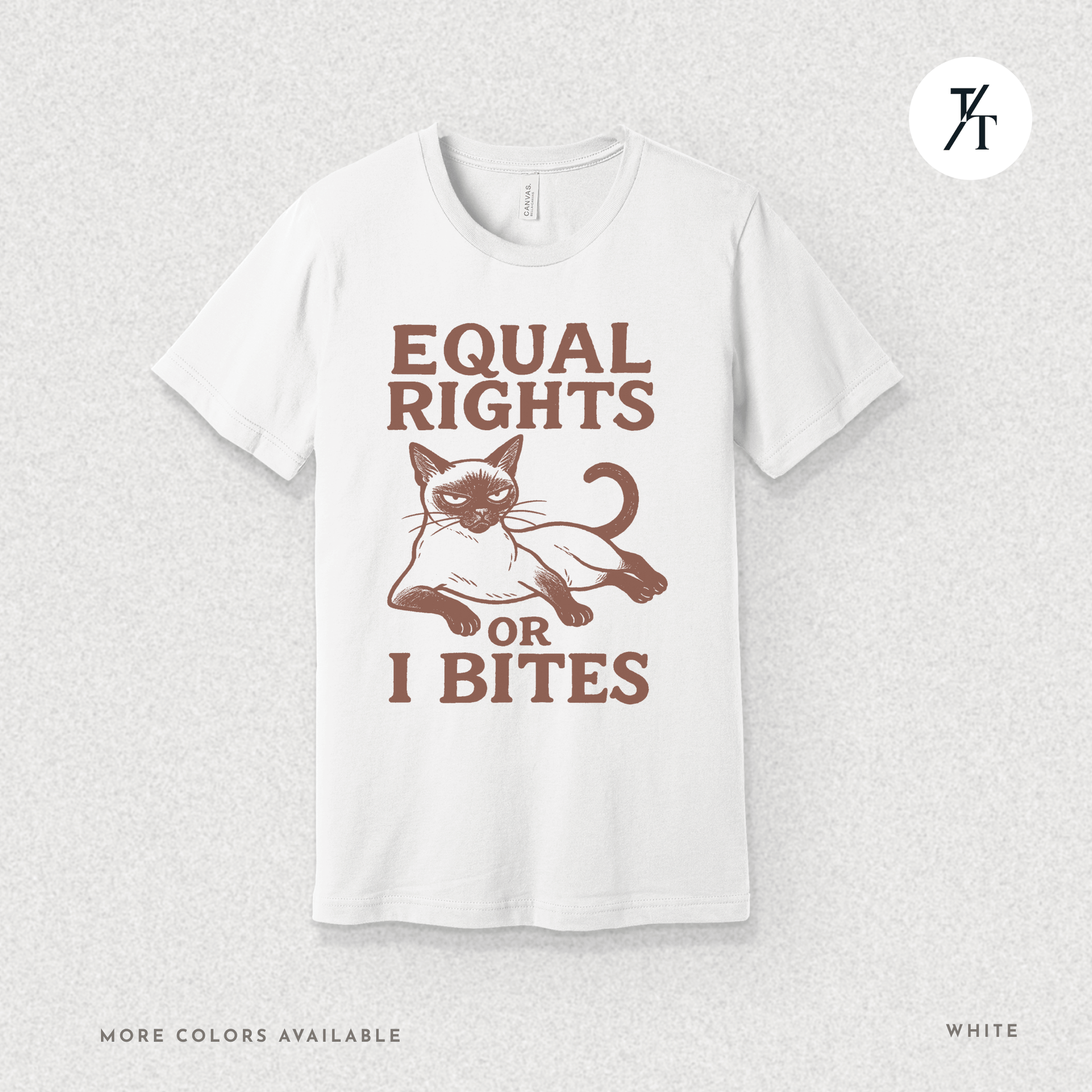 Funny Cat "Equal Rights or I Bites" Feminist Political T-Shirt