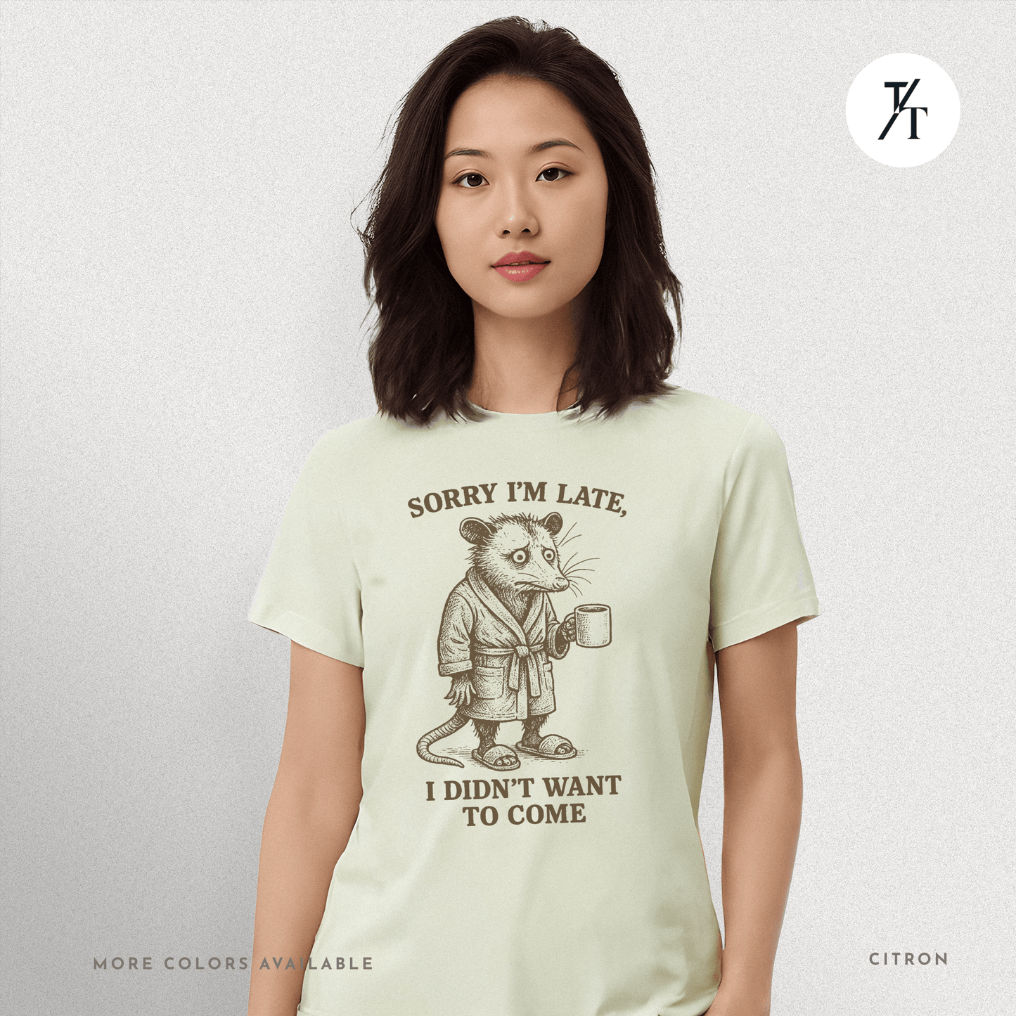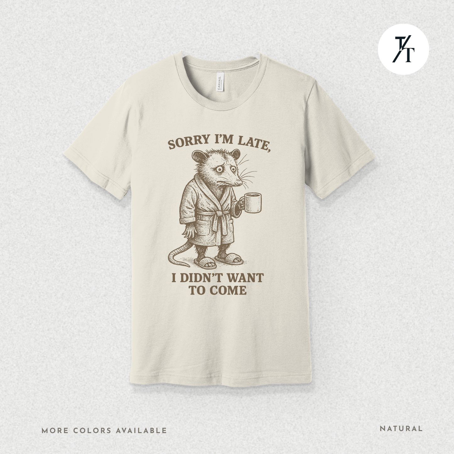 'Sorry I’m Late..." Possum Introvert Funny Graphic T-Shirt