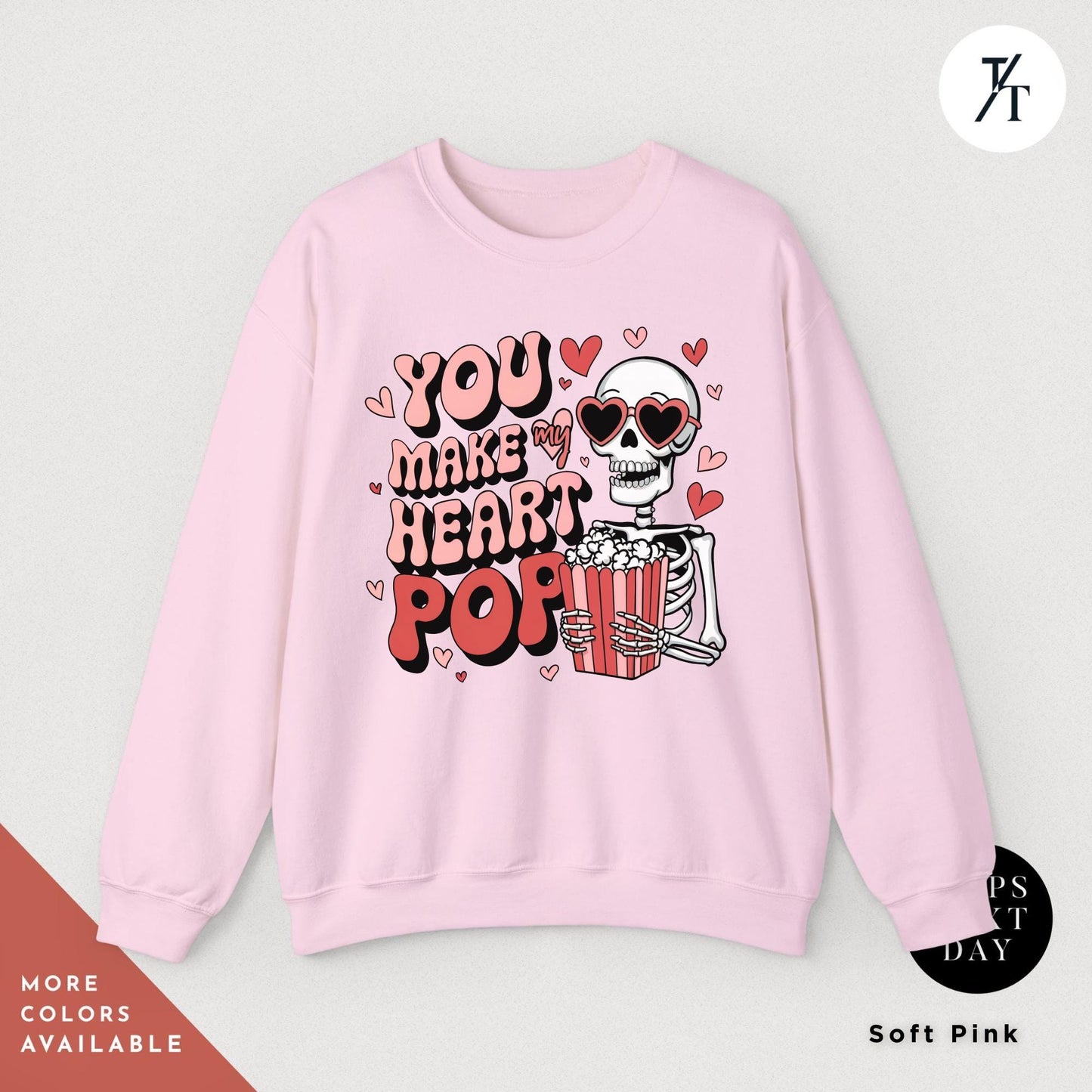 You Make My Heart Pop Skeleton Valentines Day Sweatshirt